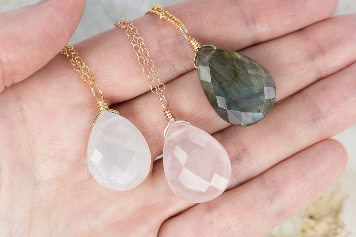 Large Rose Quartz Faceted Teardrop Crystal Pendant Necklace Luna Tide Skip to content