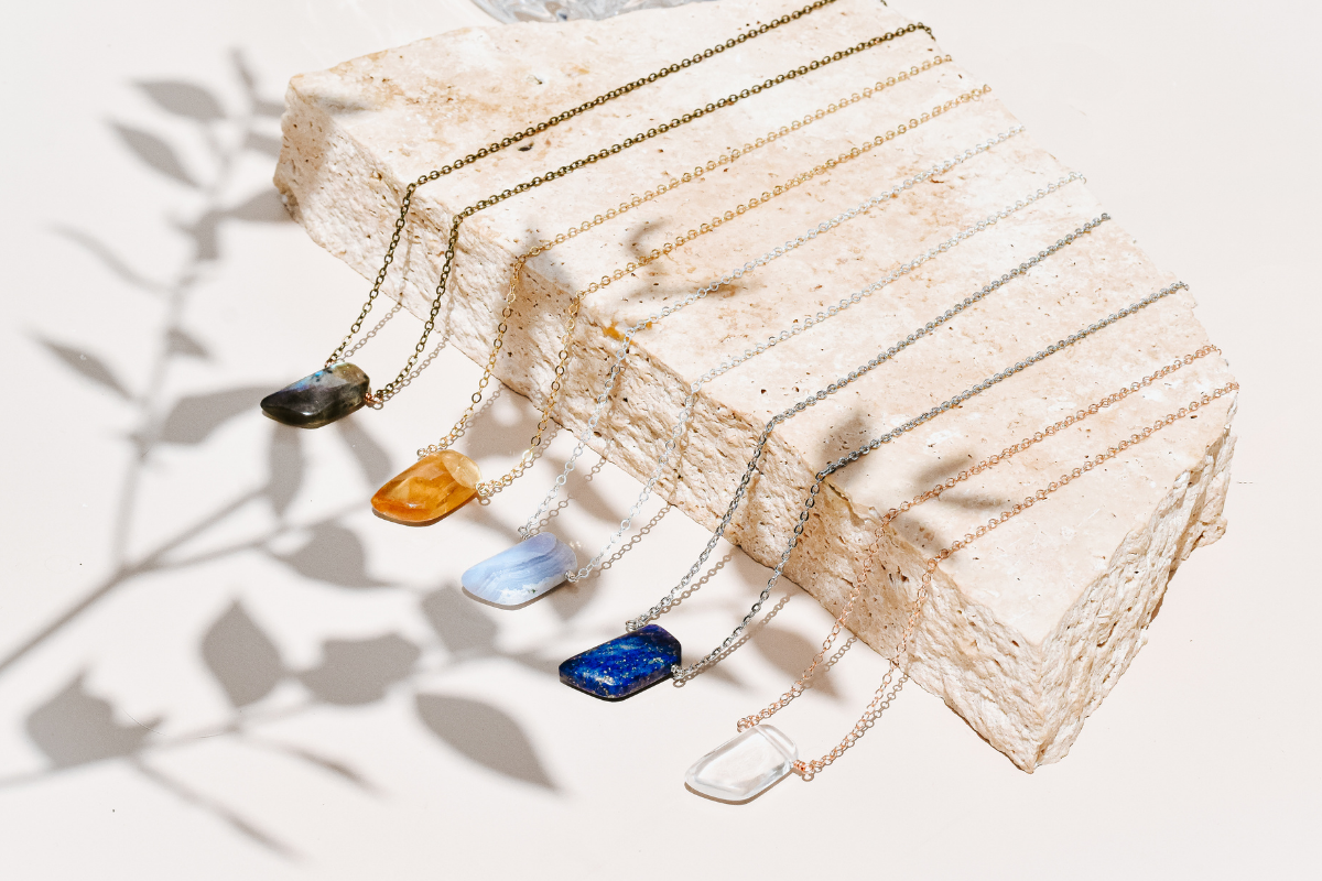 Small Smooth Clear Crystal Quartz Crystal Slab Necklace