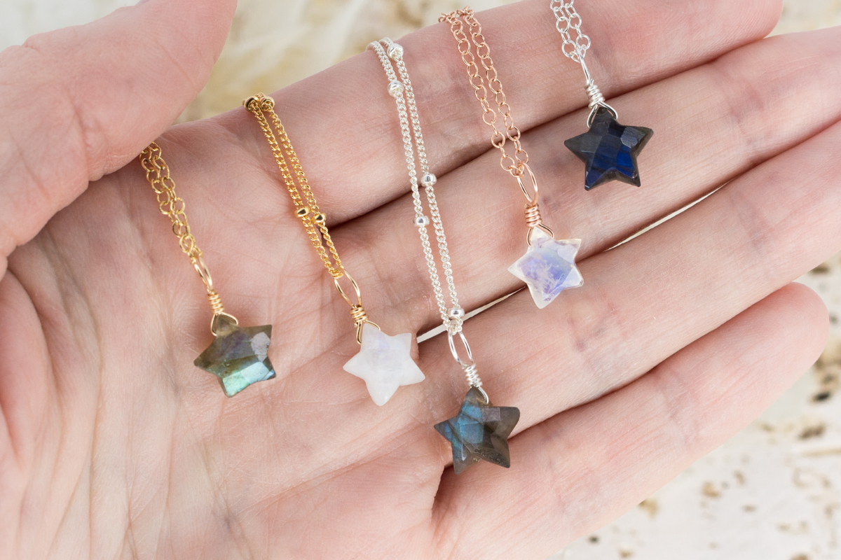Little Labradorite Star Pendant Necklace - Little Labradorite Star Pendant Necklace - Stainless Steel / Cable - Luna Tide Handmade Crystal Jewellery