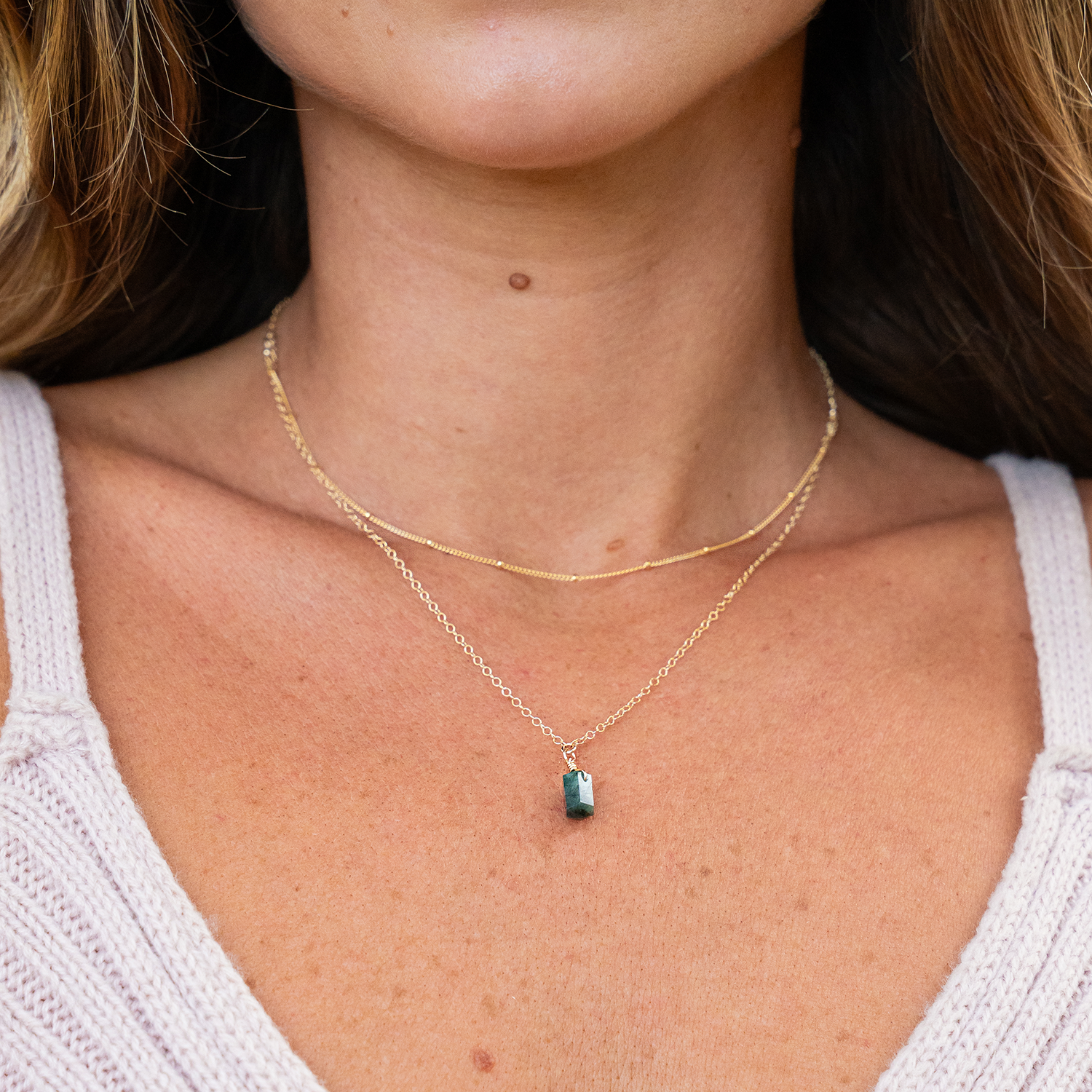 Delicately layered chains frame the crystal while remaining dainty yet strong for everyday wear. Handcrafted in sterling silver, 14k gold fill, 14k rose gold fill, or stainless steel, this necklace is waterproof, non-tarnish, and secured with a spring ring clasp. Every detail is lovingly handmade, creating a timeless treasure that flows with your energy as beautifully as it complements your style.