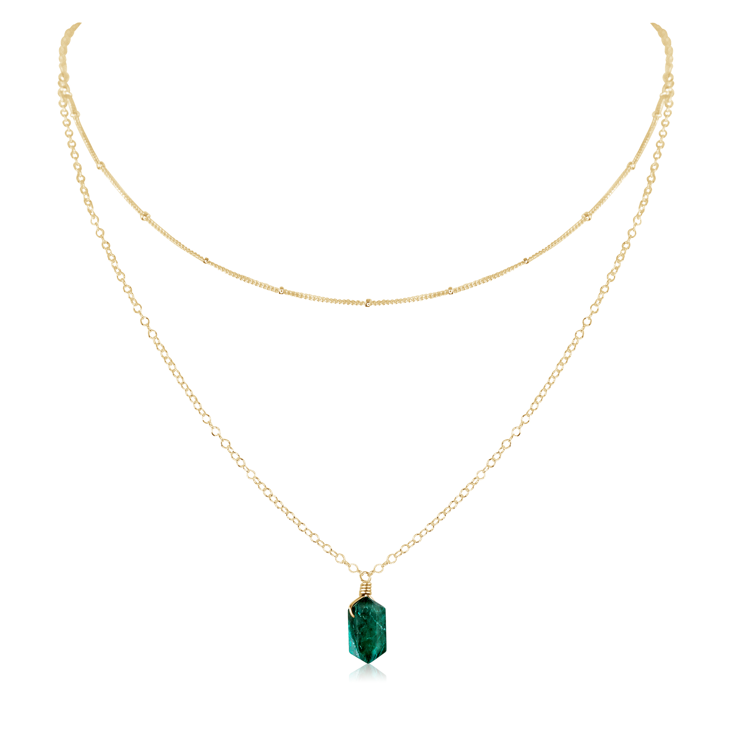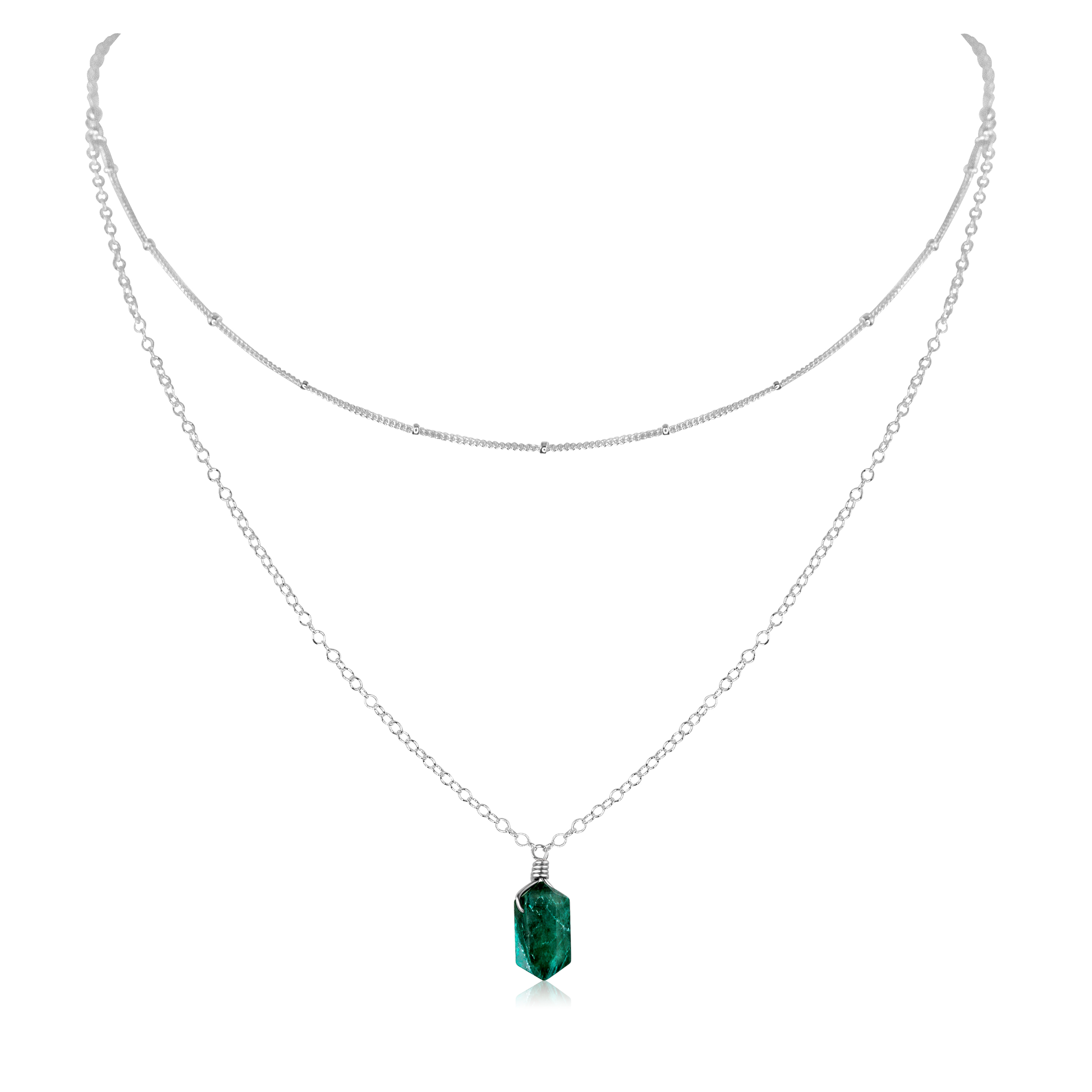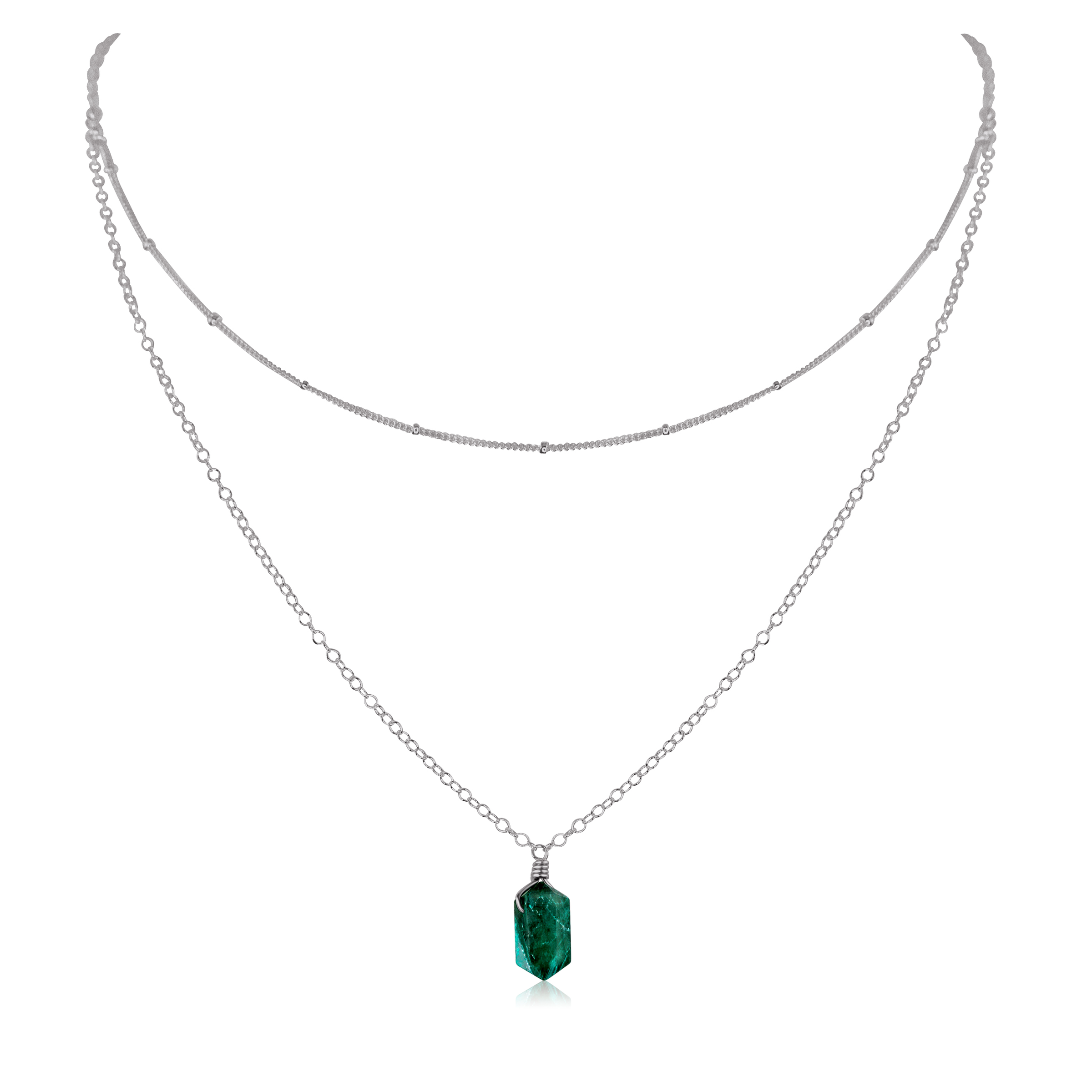 Emerald Double Terminated Crystal Chain Layered Choker Necklace