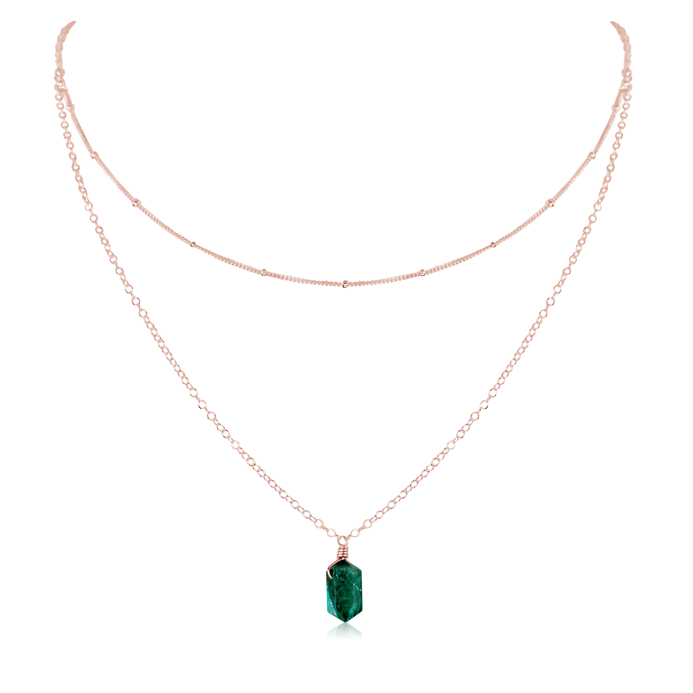 The Emerald Double Terminated Crystal Chain Layered Choker Necklace glows with deep green beauty, its unique double terminated point flowing energy in both directions to bring balance and harmony. Emerald is treasured as the stone of abundance, compassion, and renewal, nurturing the heart while uplifting your spirit with confidence and vitality. Its smooth faceted surface feels soothing against the skin, a daily reminder of love and serenity carried close to you.