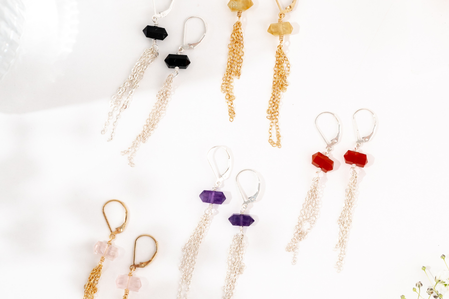 Make a romantic statement at your next special occasion with the Rose Quartz Double Terminated Crystal Point Tassel Earrings. These captivating earrings feature gentle Rose Quartz crystals, cherished for their loving and healing properties. The elegant metal chain tassels add a touch of sophistication, perfect for parties and evening events. The leverback style ensures a secure and comfortable fit, making these earrings a blend of grace and heartfelt energy. Handcrafted with love, they connect you to the magic of the universe and the tender essence of nature.