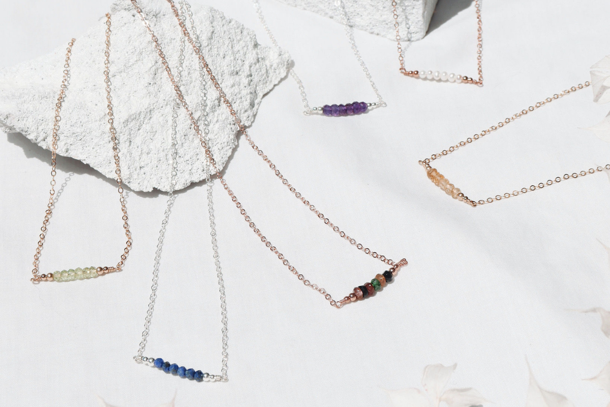 Make every day special in our purple amethyst tiny bead bar necklace. This necklace is a dainty, feminine design that looks lovely worn either alone or layered with other dainty necklaces. The semi-precious gemstone beads used in this necklace are made from natural, genuine purple amethyst that have been faceted cut so they sparkle in the light, making it the ideal necklace for evening wear, weddings and special occasions.