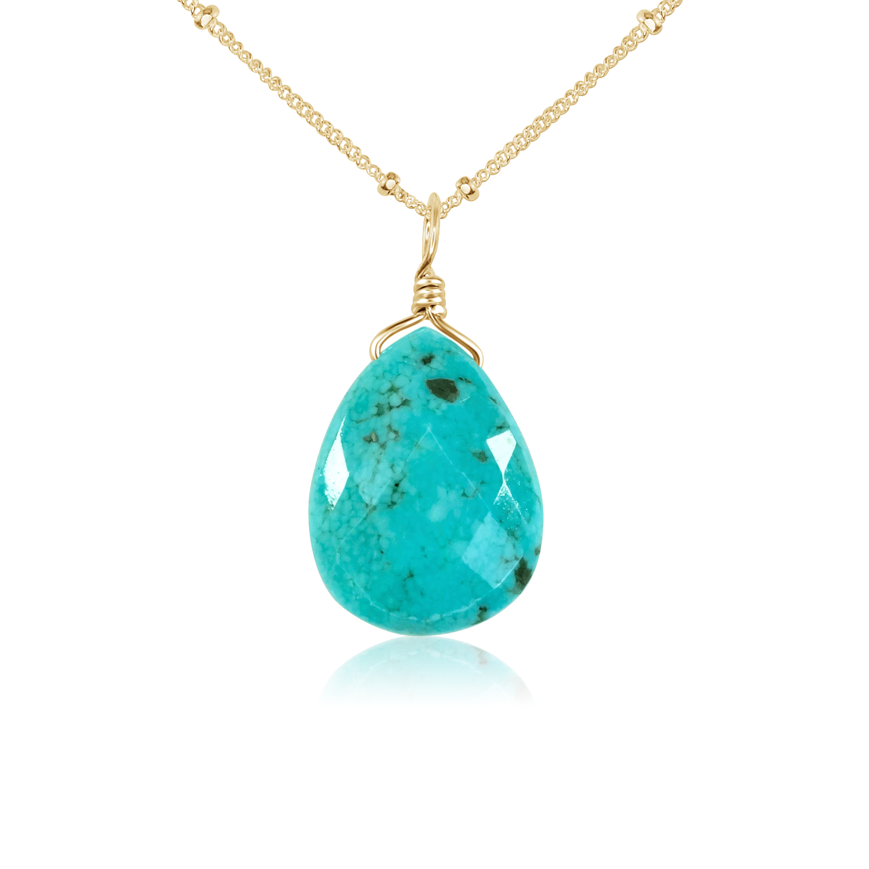 Large Turquoise Faceted Teardrop Crystal Pendant Necklace