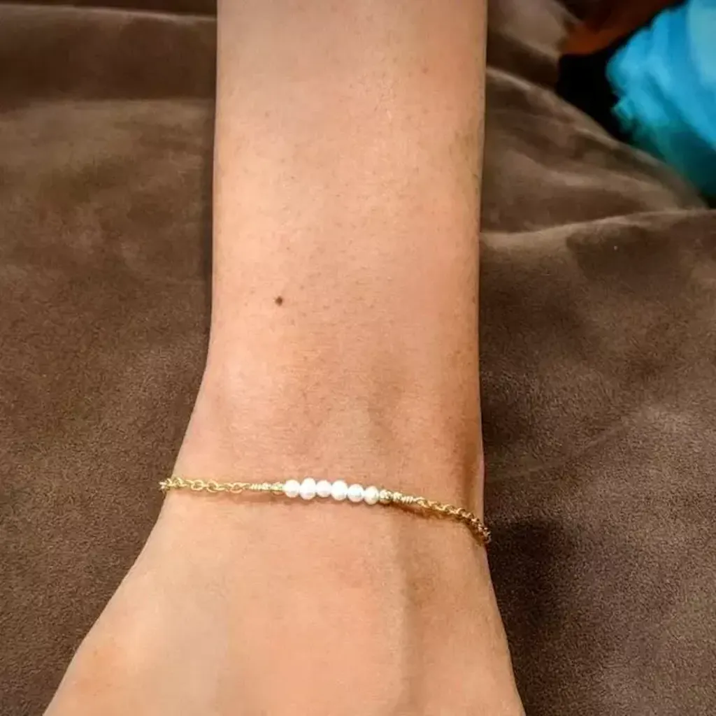 Make every day special in our tiny gemstone bead bar bracelet. This bracelet is a dainty, feminine design. The semi-precious gemstone beads used in this bracelet are made from natural, genuine gemstones that have been faceted cut so they sparkle in the light, making it the ideal bracelet for evening wear, weddings and special occasions.