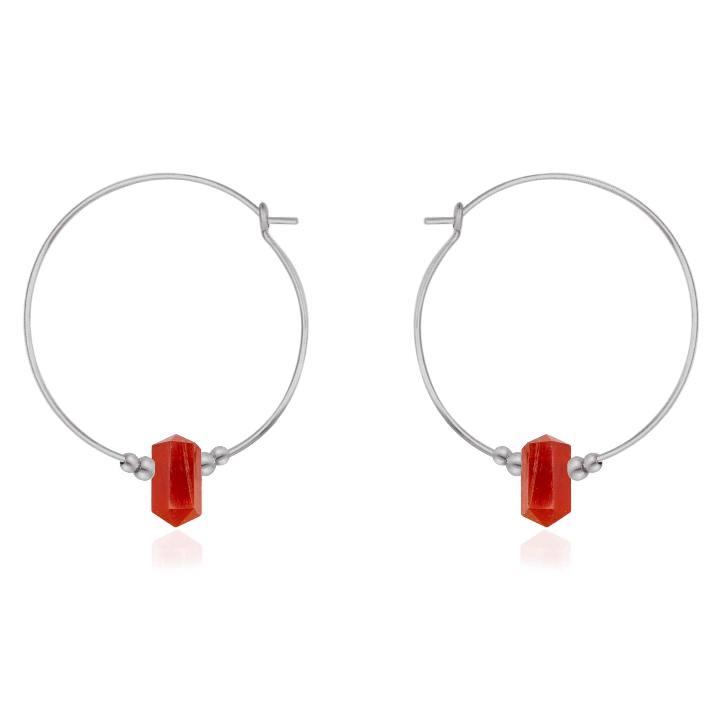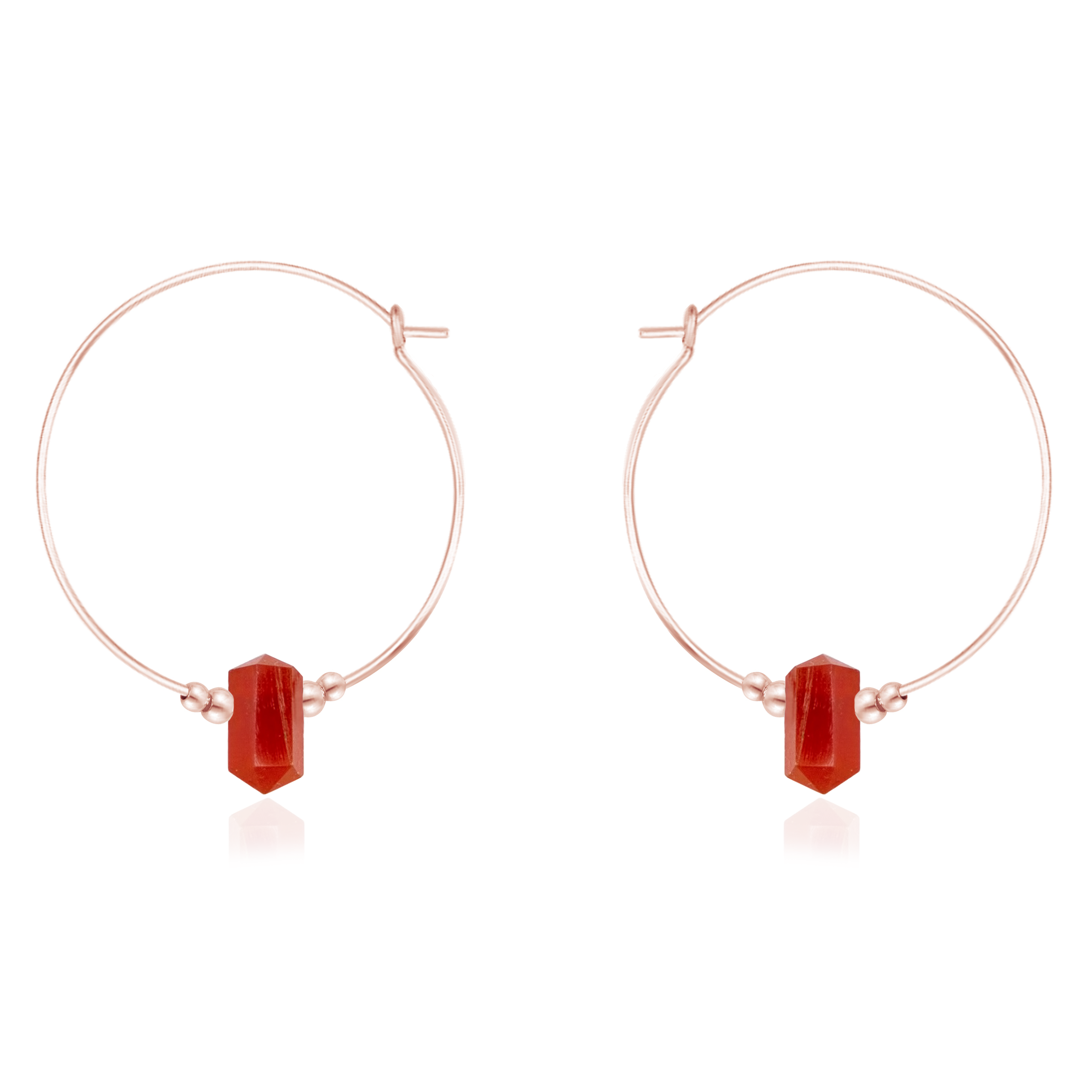 Large Hoop Carnelian Double Terminated Crystal Point Earrings